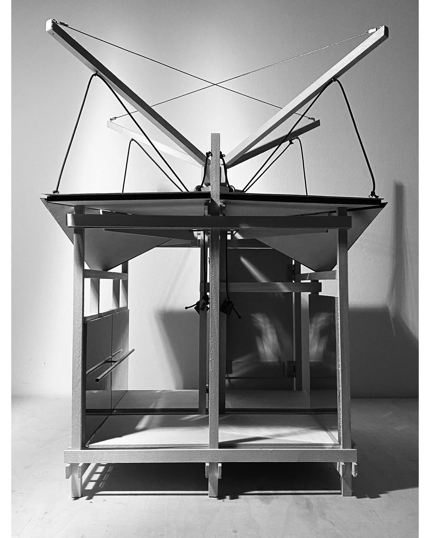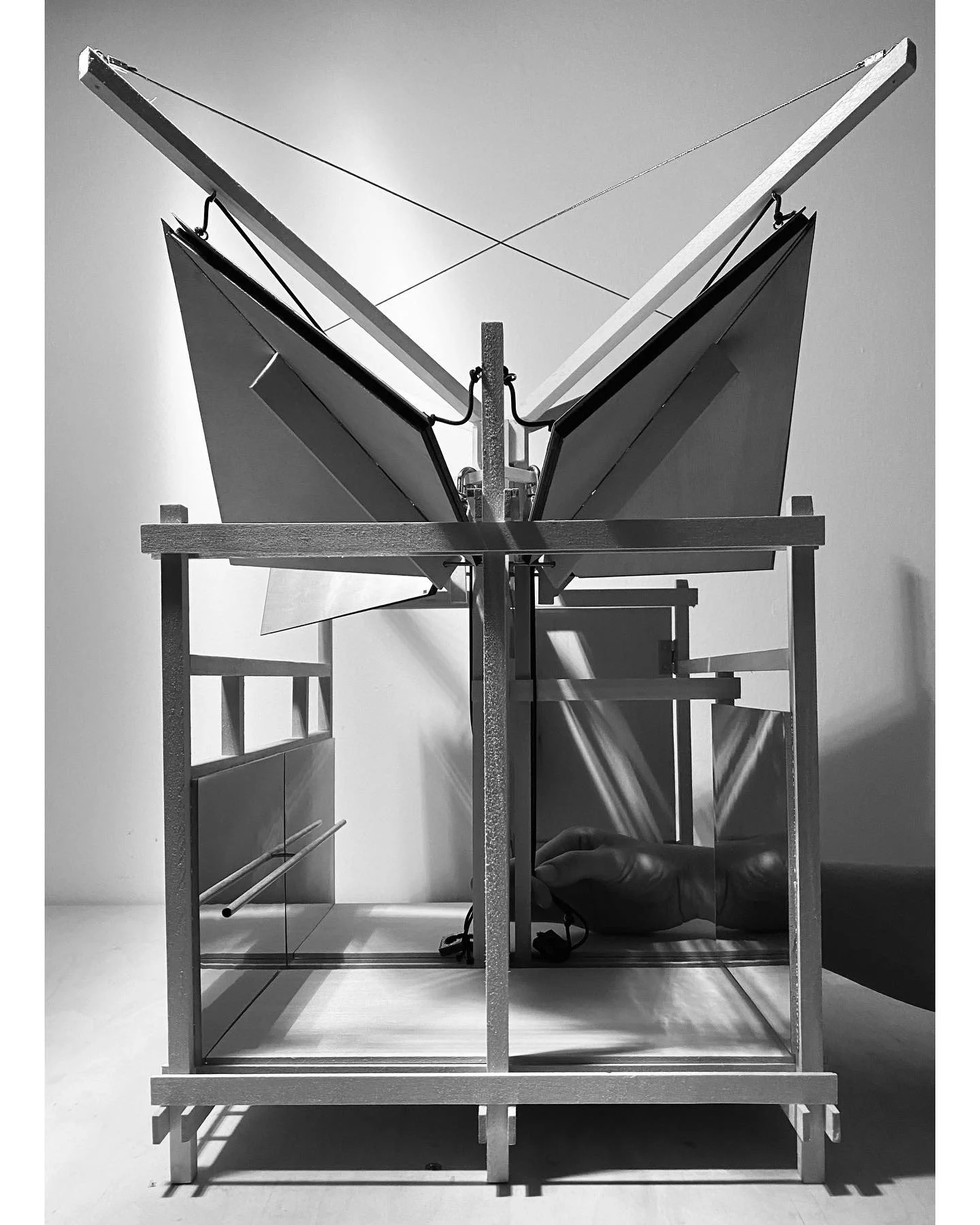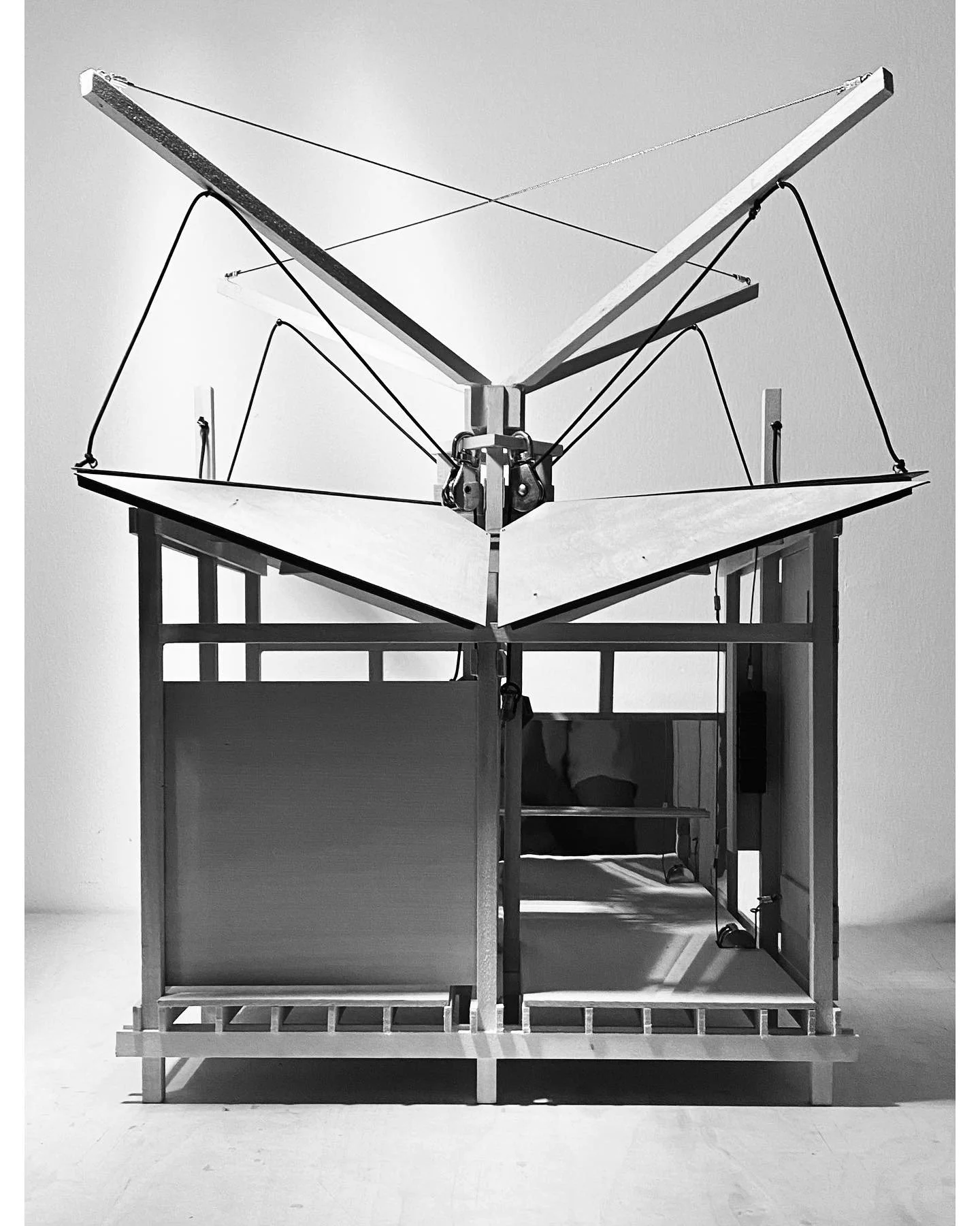 In a studio lead by professor David Kratzer in collaboration with Dr. Stephanie Muth and Dr. Louis Hunter, Moving Architecture is an experiment in simple mechanics and physical therapy research, the two combine to create a space suitable for exercise no matter the differences in occupancy. Architecture for Physical Therapy is a unification of the mechanics of architecture and exercise; where the structure itself allows the user to push and pull on its roofs and walls to exercise and gain strength in core areas of the human body. As the body moves in its range of motion so does the structure. It is essentially one giant exercise machine that is designed specifically for physical therapists and their patients